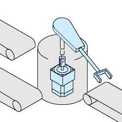 成品出來后,機械手負責把次品投出