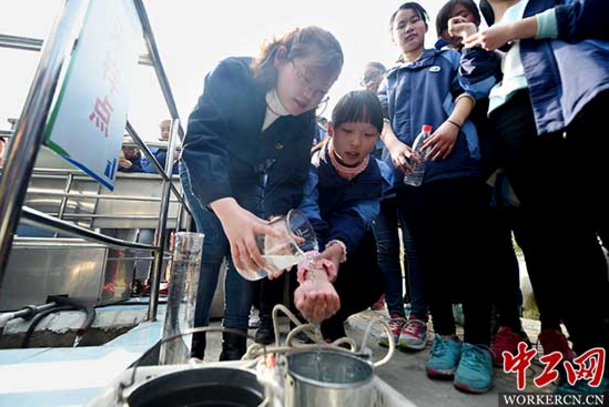 3月22日是第25屆“世界水日”,也是第30屆中國(guó)水周第一天。為了讓更多的市民了解污水處理流程、增強(qiáng)節(jié)約和保護(hù)水資源的意識(shí),3月21日國(guó)禎環(huán)保朱磚井污水處理廠邀請(qǐng)瑤海區(qū)廬東學(xué)校的師生們參觀廠區(qū),工作人員給學(xué)生們講解污水處理的工藝流程和知識(shí)、對(duì)比污水處理后的樣本。