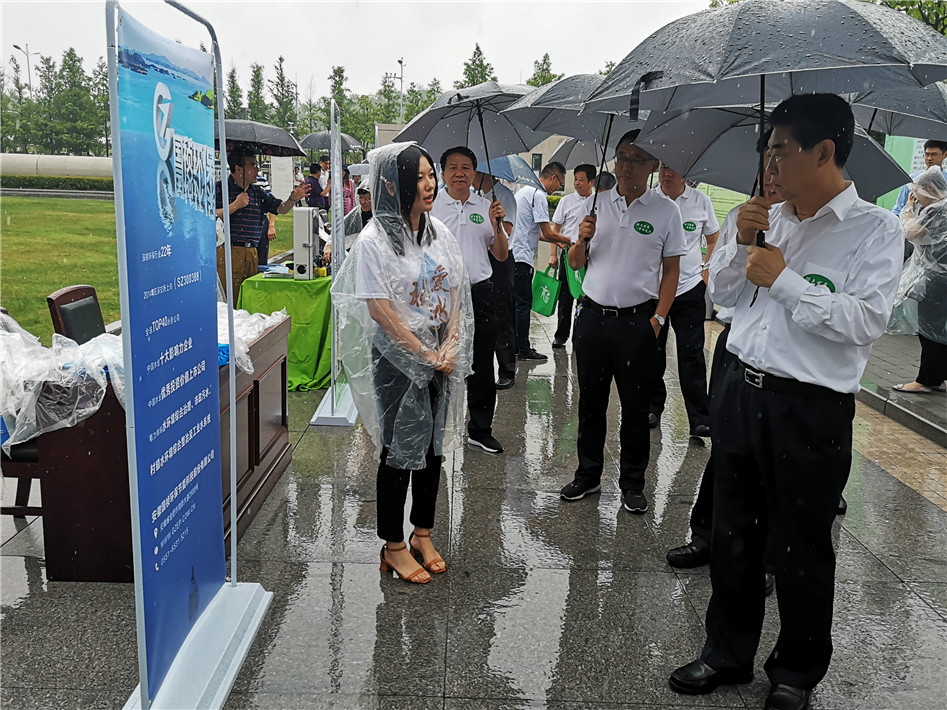 向陽帶隊雨中參觀國禎環(huán)保展區(qū),對公司業(yè)務進行詳細了解