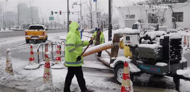 管網事業(yè)部肥西經開項目部出動綜合鏟雪車清除路面積雪并疏通重點區(qū)域管道